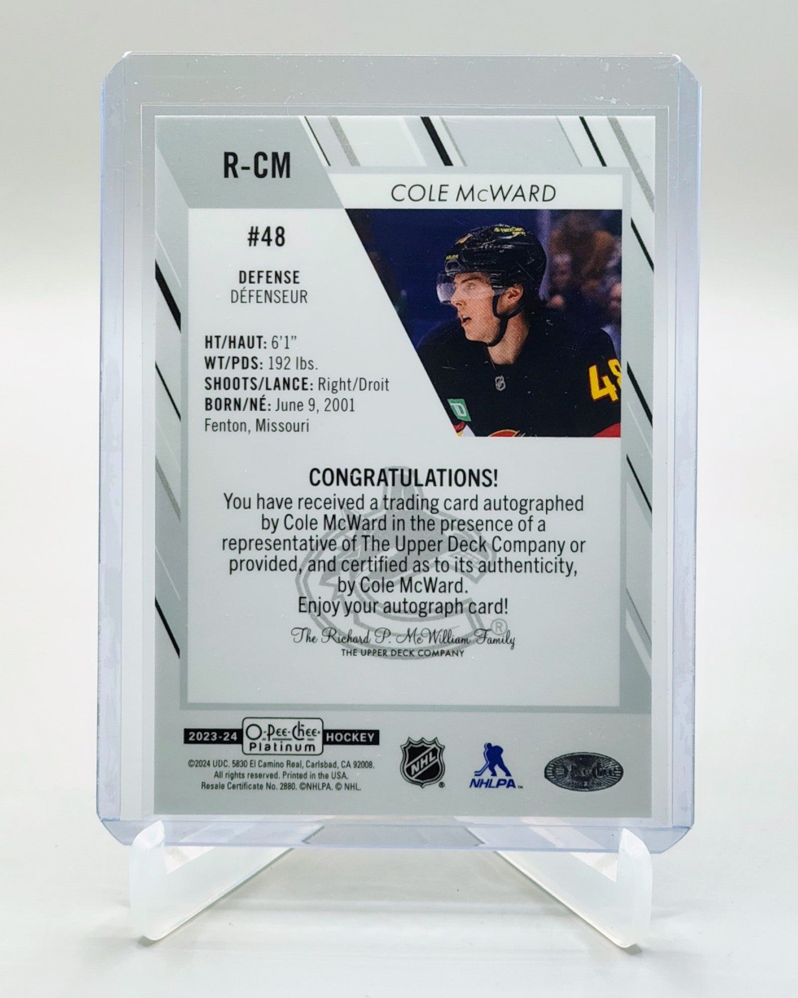 2023-24 O-Pee-Chee Platinum #R-CM Cole McWard Rookie Autographs